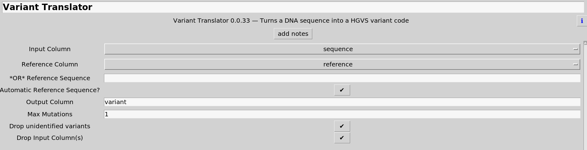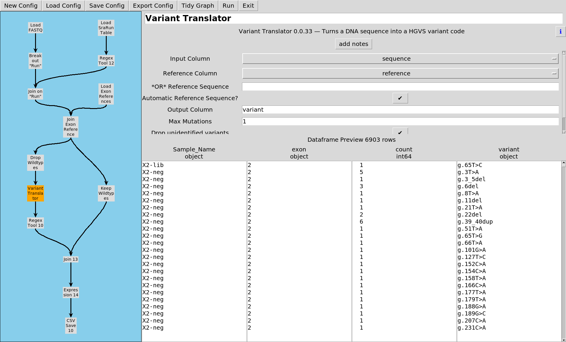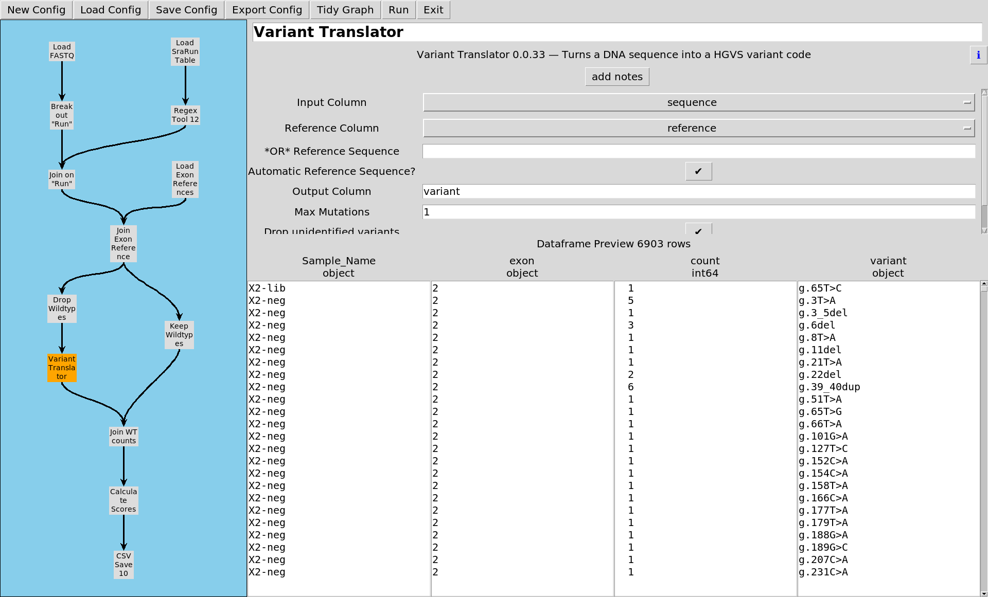 ... and call each of the variants, comparing the reference sequence to the variant sequence, recording the HGVS variant string.