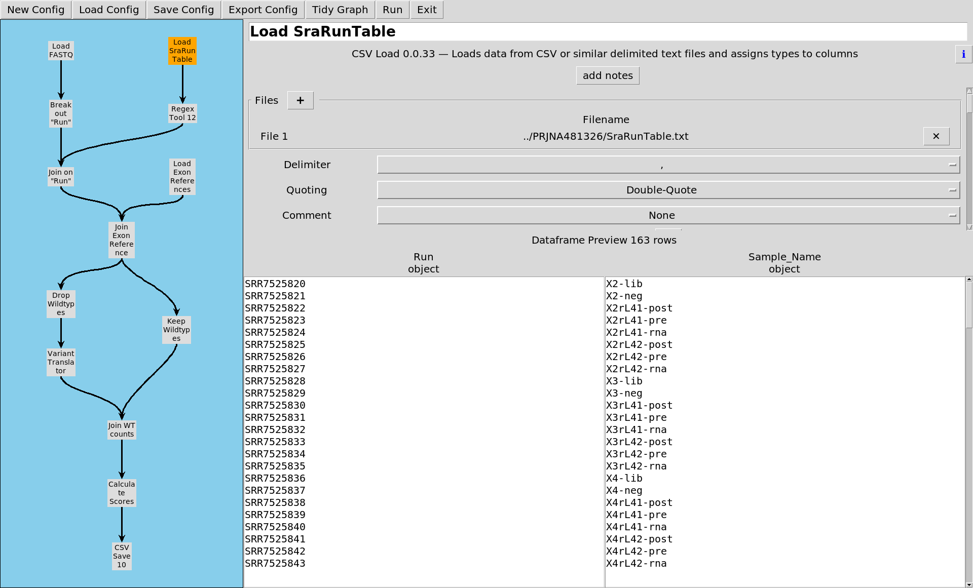 There's another file in with the data files, a CSV file called `SRaRunTable.txt`. This tells you which experiment each of those Runs belongs to, and which phase of the experiment.