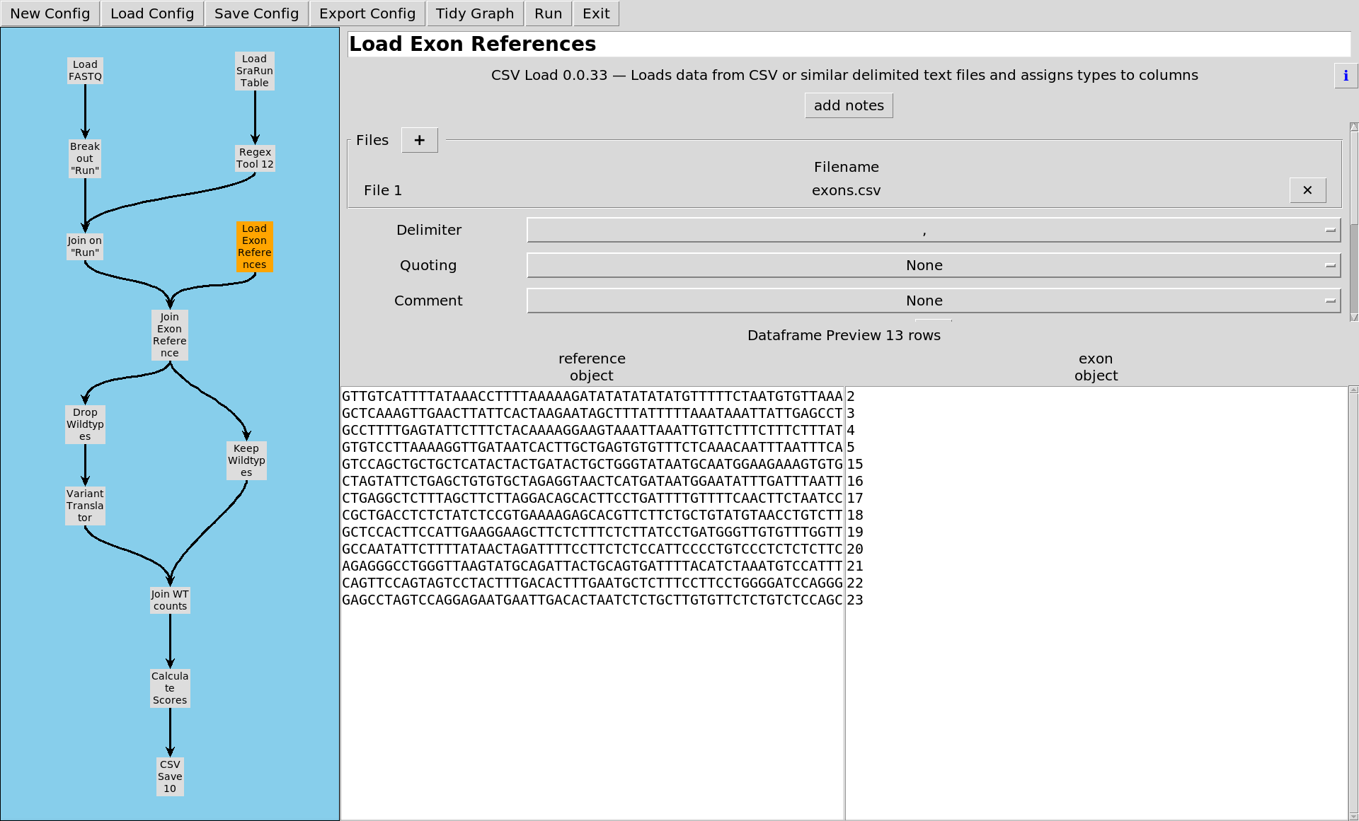 We know what the reference sequence is for each of these exons, so we'll put that in another file ...