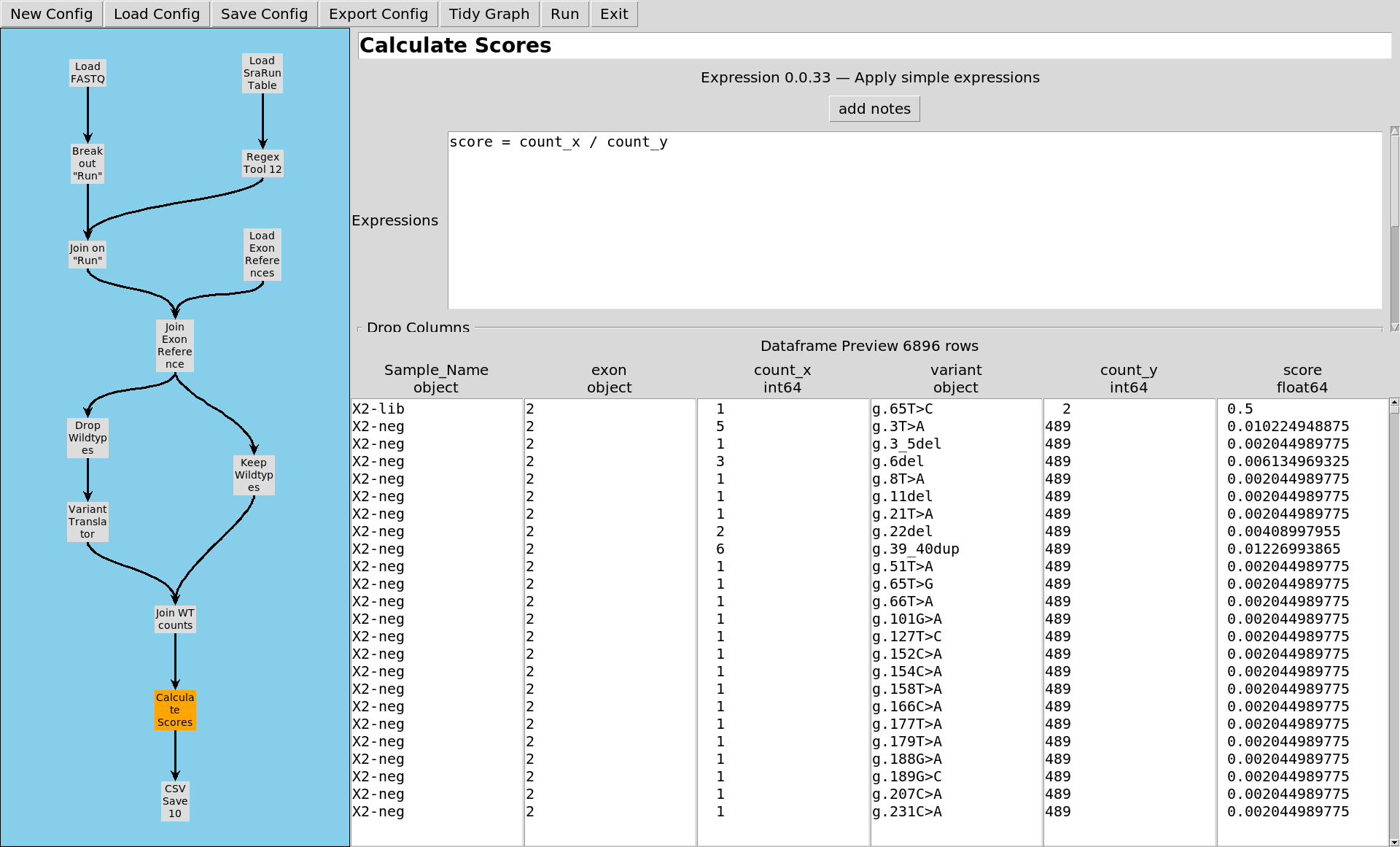 Okay so a quick example of how CountESS can solve experimental problems. This is a setup much like the SGE experiment, using the same BRCA1 data from that experiment.